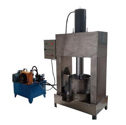 液壓榨汁機(jī)由液壓泵站和壓榨主機(jī)兩部分構(gòu)成,液壓油缸驅(qū)動(dòng)壓榨盤對(duì)放料框中的物料進(jìn)行不斷的壓縮,放料桶中物料容積的不斷縮小,從而對(duì)物料進(jìn)行壓榨脫水。