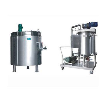 本設備為立式圓柱形,錐形封頭,外帶蒸汽加熱夾套及超細玻璃棉厚度 50mm 保溫層,全封閉容器,主要供果汁飲料、乳品、制藥等行業作為加熱攪拌料液之用。